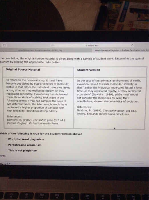 Indiana University Plagiarism Test Answers Quizlet. 12 March 2021 - It took him a few seconds to realize the two people were. Start studying Plagiarism test.